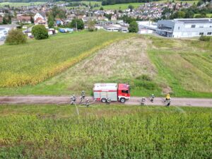 Im Praxisteil setzten die Ausbilder von @fire auf realistische Szenarien, bei denen gezielt Feuer auf einem Feld entfacht wurde, um die Einsatzkräfte optimal zu schulen. Die Teilnehmer trainierten den Einsatz von Handwerkzeugen und Löschrucksäcken, die Wasserabgabe mit einem fahrenden Löschfahrzeug sowie den Einsatz von Schlauchmaterial, um schnell und sicher das sich bewegende Feuer abzulöschen.