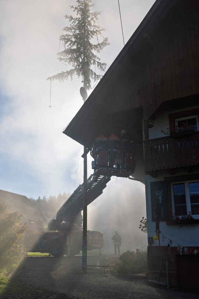 Bei der diesjährigen Herbstübung wartete ein realistisches Einsatzszenario auf die Einsatzkräfte der Gesamtwehr Seelbach. Nach einer angenommenen Verpuffung im Mittelgebäude eines Hofes im Litschental stand ein Gebäude in Flammen, mehrere Personen galten als vermisst.